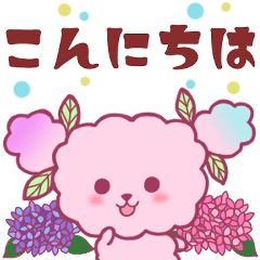 ❤️紫陽花×トイプードル❤️ 日常会話に使いやすい丁寧な言葉のスタンプです。毛玉ピストル より発売