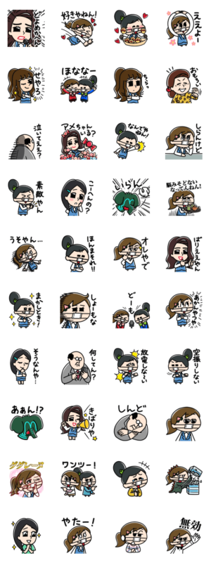 適度に関西弁なモモウメ スタンプに書いてある文字一覧
