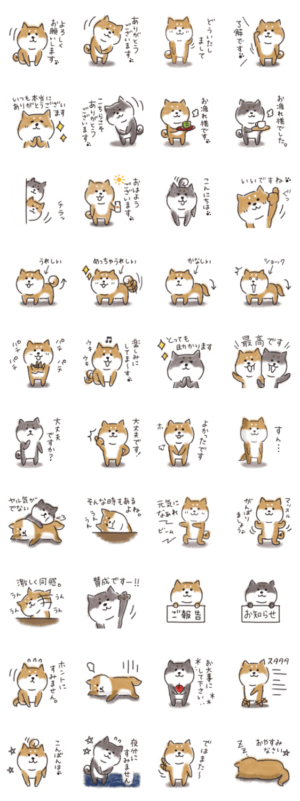 もっちりした柴犬の日常で使いやすい敬語のスタンプです。m-coffee より発売