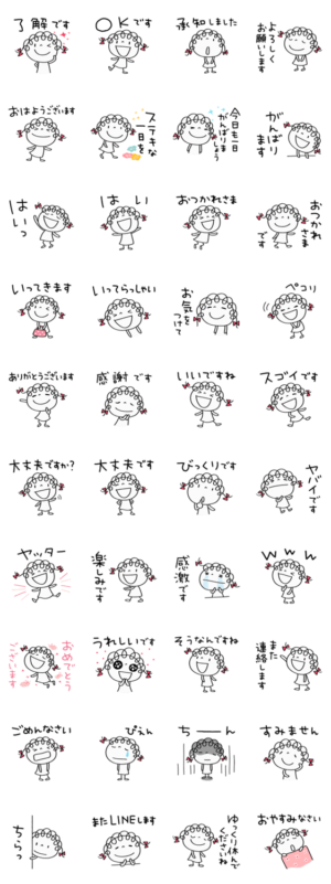 くるリボンちゃんの表情がかわいい、敬語の挨拶スタンプです!!