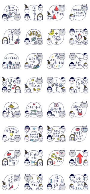 ベーシックなので使いやすいスタンプです。ねこも加わり、ワイワイ夏バージョンです。