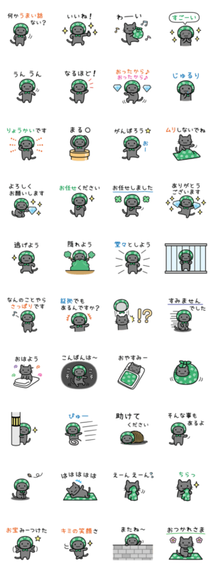 泥棒猫のスタンプです。あなたもこのネコと一緒に、たまには色々な物を盗んでみましょう。