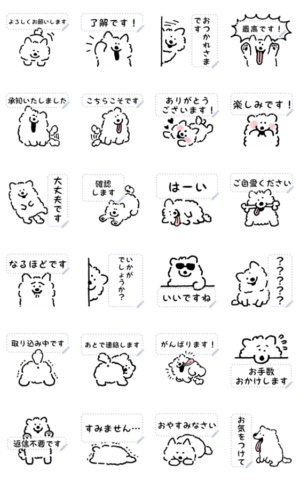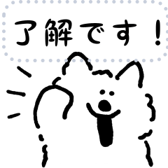 白い犬、サモエド。いつもフワフワしている彼女の文字自由設定スタンプ