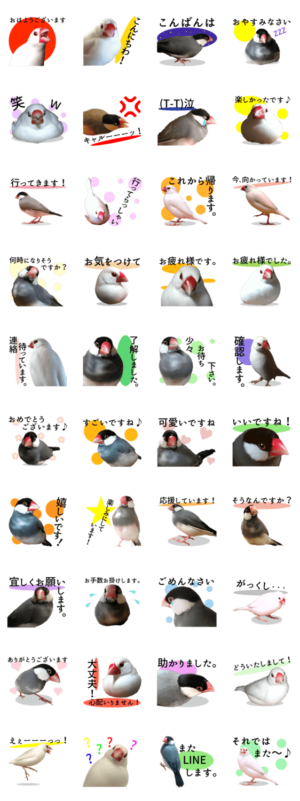 桜文鳥と白文鳥の日常会話【実写版】 スタンプ画像一覧