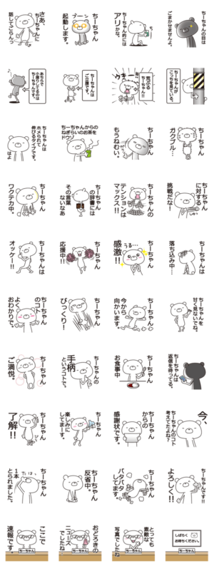 あっちゃんが日常会話に使えるスタンプです。チーちゃん、ちいちゃん、ちなつ、ちはる、ちあき、ちか、ちずか、ちずる、ちさと、などの皆様にお使い頂けるクマです。