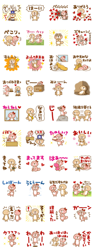 このスタンプは以前期間限定で無料配布された「突撃!ラッコさん✕LINEギフト」のコラボスタンプ16種に新規スタンプ24枚を追加して再リリースしたものです。