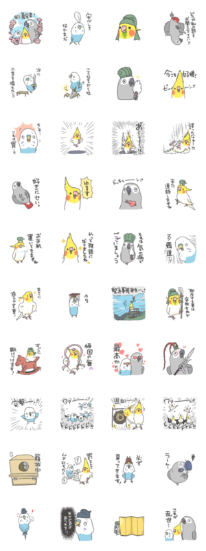 オカメインコとセキセイインコとヨウムのスタンプですkanmiQ より発売
