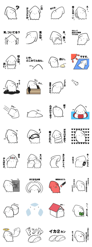 真顔で煽っていくイカのスタンプ第1弾。日常会話でも使えます!キクチユウト より発売