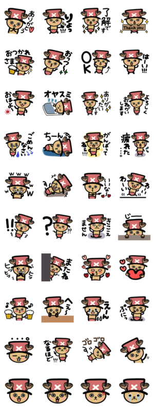 人気アニメワンピースとあねきがコラボした期間限定販売のオリジナルのスタンプになります。かわいいチョッパー大好きな方是非‼︎年間毎日使える挨拶スタンプになってます