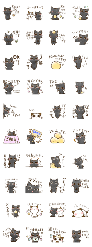 おはぎさん。3~ゆるっと敬語猫~ スタンプに書いてある文字一覧