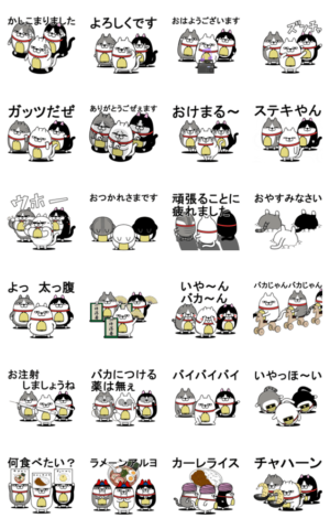 デフォルメされたねこたちのスタンプです。ユニークなスタンプをラインに飾ってトークを盛り上げましょう。