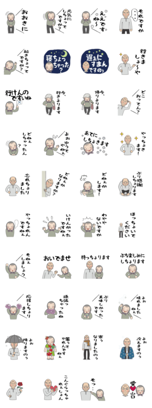 じーちゃんとばーちゃんの、山口弁スタンプの第3弾 毎日使える日常会話を揃えました。あゆまる より発売