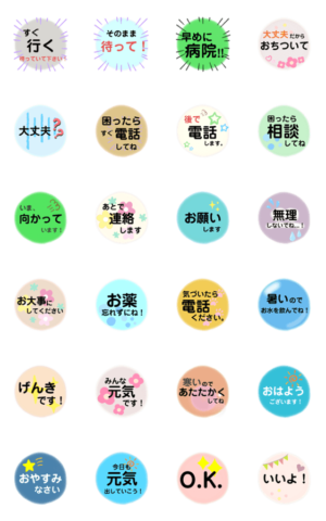 シニアの目に優しい、大きな文字のスタンプです。目に負担のないフォントサイズ、色、理解しやすいシンプルなデザインにしました。ご高齢の方へのメッセージに。