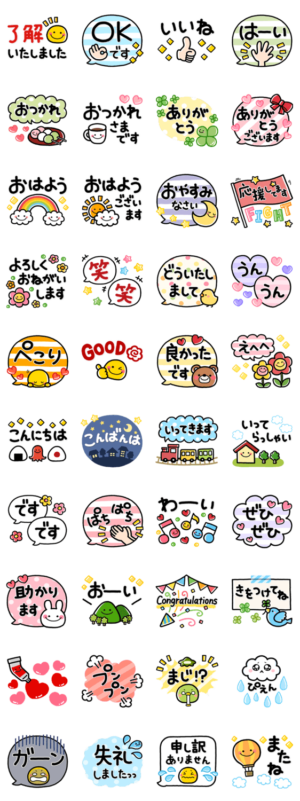 お仕事やママ友など誰にでもとっさに使える便利な丁寧語でか文字スタンプ♪内容も使用頻度が高いもののみ厳選しており春夏秋冬年中使える初心者にもおすすめスタンプです。