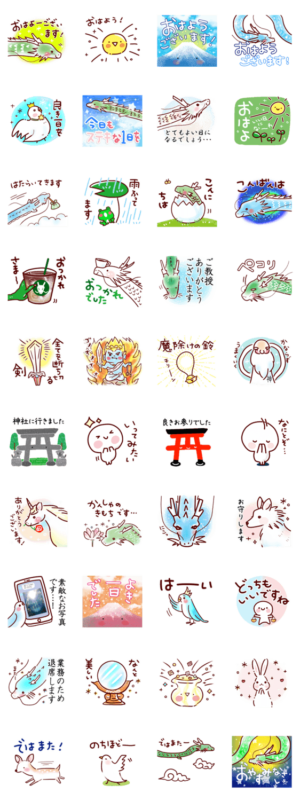 青・緑・白・虹龍や眷属さんたちが沢山登場する、前向き&パワー強めなスタンプシリーズ2です。龍・神社などがお好きな方に♪
