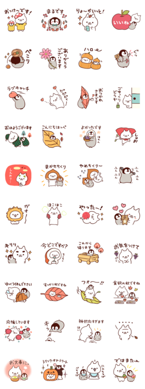 ねこくんとぺんちゃんが秋の季節を楽しむスタンプが登場!トークもほっこり♪