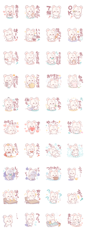肝の座ったあかちゃんくまの毎日使えるスタンプです。家族やお友達と日常で使えるリアクションや挨拶が沢山入っています。