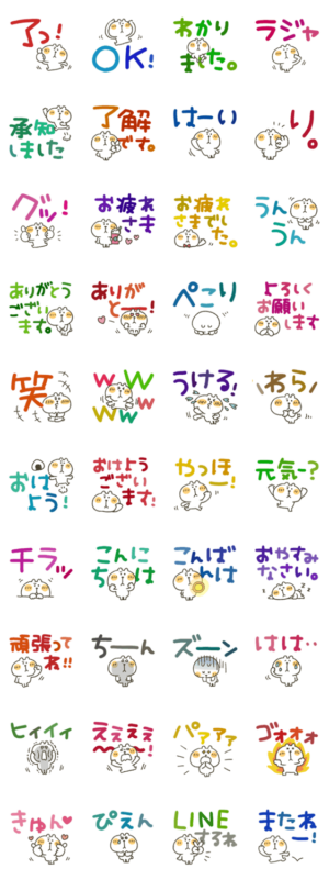 くまぴのスタンプ32作目は、シンプル可愛いでか文字スタンプです。敬語とフランク混ざってます!