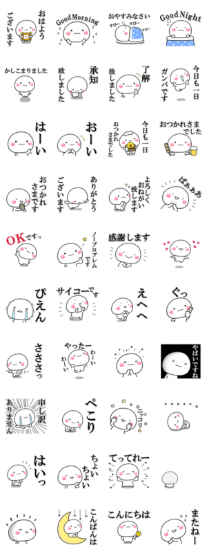 しろまるの基本スタンプ。大人フォント+内容厳選の特別verです。【作:いしいともこ】