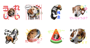 元保護犬のビーグルミックス、潮(うしお)といいます。きもちを伝えるうっしースタンプ、よかったら使ってね。