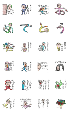 全身タイツを着た愉快な人がお祝いをしてくれて送られてきた人が笑顔になれるスタンプ