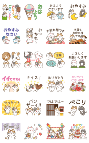 男女問わず使いやすい、ゆるい雰囲気のネコの飛び出すスタンプです。毎日の挨拶やお返事のほか、誕生日などのお祝いにも使えます♪