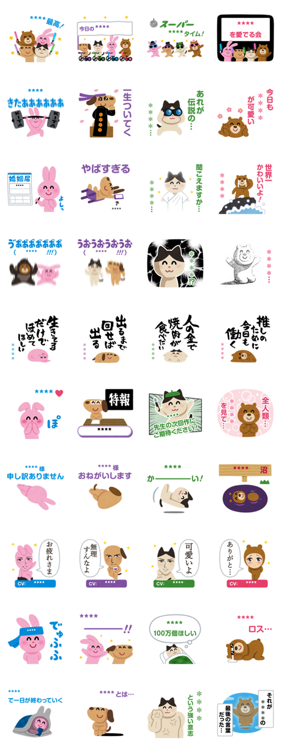 ウサギとイヌとネコとクマのキャラクターが楽しそう。カスタムスタンプ最高。