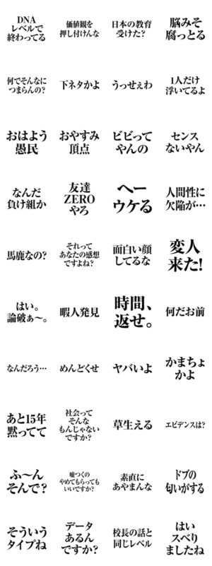 文字のみシリーズ/煽り/バカにする/小学生/中学生/悪口/毒舌/むかつく/おもしろ/面白い/挑発/一言/ひとこと/きもい/子供/名言/論破する/言い訳/敬語/丁寧語4A-Studio 2nd より発売