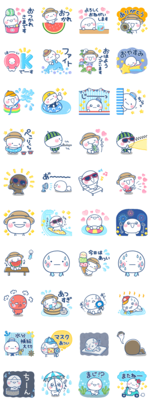 夏に毎日使える便利な内容を厳選しました。とっさに使えるやさしいスタンプです。【作:いしいともこ】