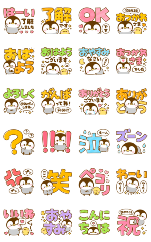見やすく可愛いデカ文字と小さな赤ちゃんペンギン「ぺんぺん」が 画面いっぱいに飛び出して動くポップアップスタンプです。