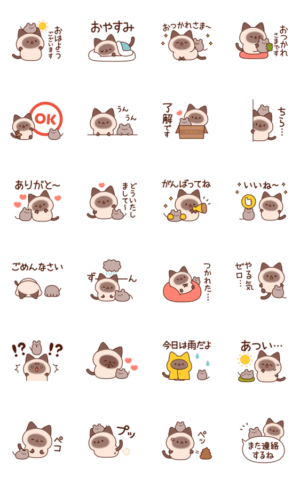 とぼけ顔が可愛いシャム猫とネズミさんの毎日使えるスタンプです♪DECOR より発売