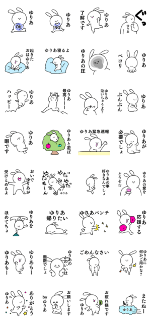 ゆりあさんが使えるスタンプです。ゆりあちゃんへのプレゼントにもどうぞ。ユリア、友里亜、由利亜、百合愛、優里亜、有理亜など。