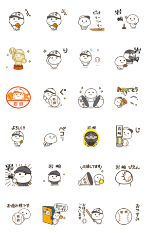 帽子やボール、声出しに名前入りで気持ちが届く野球のスタンプ!楽しいベースボールライフを☆byだいふくまる。「岩﨑,いわさき」