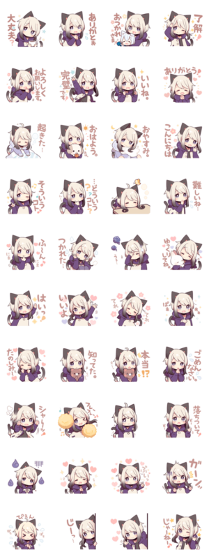 黒猫少年たちの友達、少し甘えん坊なシャム猫少年のスタンプ第七弾です。毎日使える挨拶や日常会話、リアクションが沢山入っています。