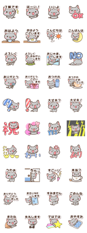 灰色ネコすたんぷ。よく使う言葉がたくさんあります!!いいですね♪