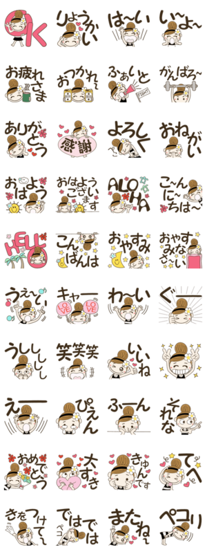 お団子頭の可愛い女の子。大人女子。でか文字編です。毎日使える日常会話です。文字の枠は白なので背景が黒い方も大丈夫。