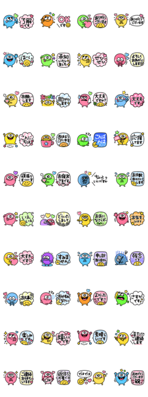 カラフルモンスターが敬語でお話!コンパクトで省スペースなスタンプです。