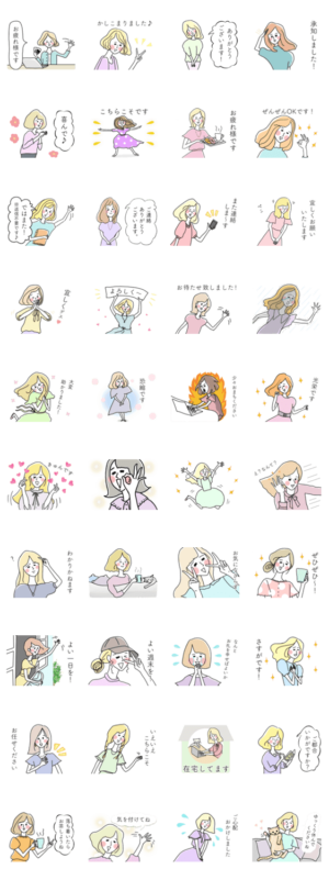 お仕事頑張る大人女子の日常会話に♪ゆるめの敬語&お仕事ワードが入った毎日使えるスタンプ♪ちょっと小さいサイズで働く大人女子にぴったり♪