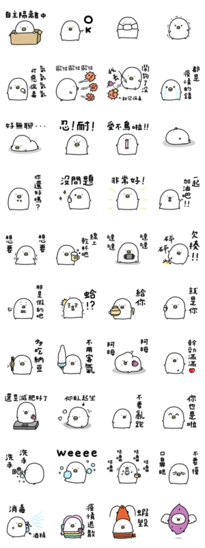 うるせぇトリのらくがき★ステイホーム台湾 スタンプに書いてある文字一覧