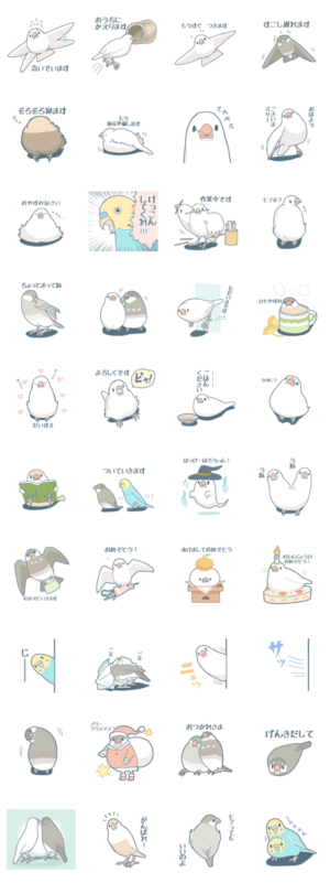 季節のあいさつをくわえた文鳥さんのスタンプですBUNCHO BOX より発売