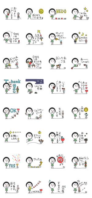 黒髪のレト子がトークをほんわかまとめます♡おはよう/おやすみ/了解/よろしく/おつかれ/ありがとう/など毎日使いたいスタンプできました。