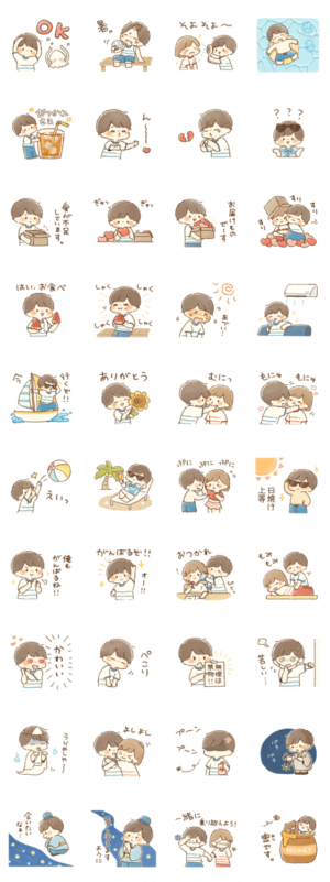 夏仕様のカップルスタンプです〜。二人で夏を乗り切れるように。特に遠距離カップルにおすすめ!男の子用