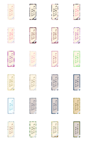 短冊風のメッセージスタンプです。シンプルなものからかわいいものなどいろいろ集めてみました。枠の色合いに合わせ文字の色も変えてみました。 現在この商品は一部のスマートフォン版LINE 10.3.0以上のトークルームでのみ使用できます。動作環境の最新情報はヘルプをご確認ください。amuhina より発売