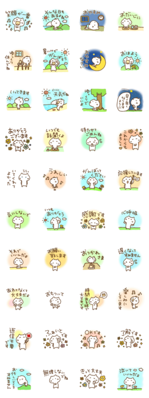手描きイラストのようなしろねこの文字入りスタンプです。会話になじむ使いやすいスタンプです!