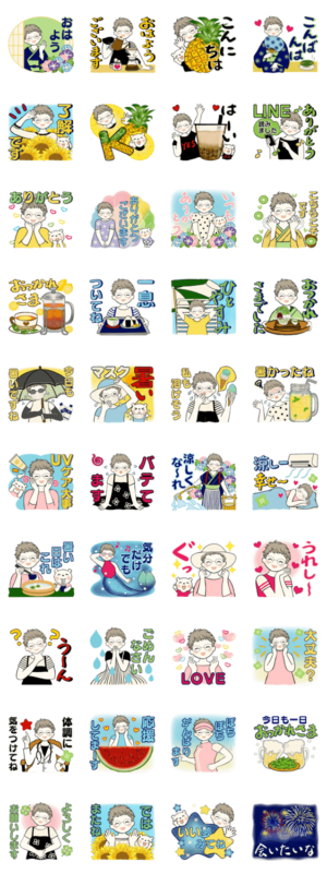 目に優しい大きめの文字の日常スタンプです。 相手をきづかう言葉や夏にぴったりの言葉もいっぱい。 元気に夏を乗り切りましょう。
