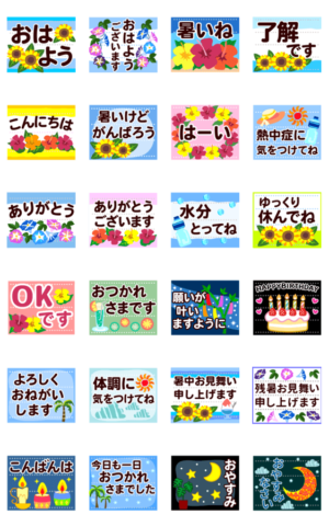 敬語/動く/夏/かわいい可愛い/シンプル/大人/日常/七夕/願い事/誕生日/父母の日/残暑暑中見舞い/おめでとう/手紙/グリーティング/メッセージカード/毎日使えるスタンプ特集
