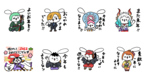 パリピポウサギのワンピースコラボスタンプ!2022年は寅年ということで藤虎が新年のご挨拶をしています!
