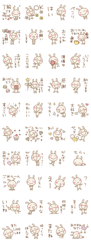 ほぼ白うさぎさんのスタンプ、THEスタンプって感じのデザイン。