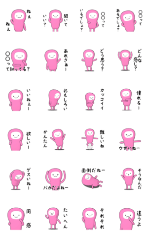 ピンク色した小さな謎の生物、ワンダーサム。 親しい人との会話に適したサポート的スタンプです。bigboss より発売