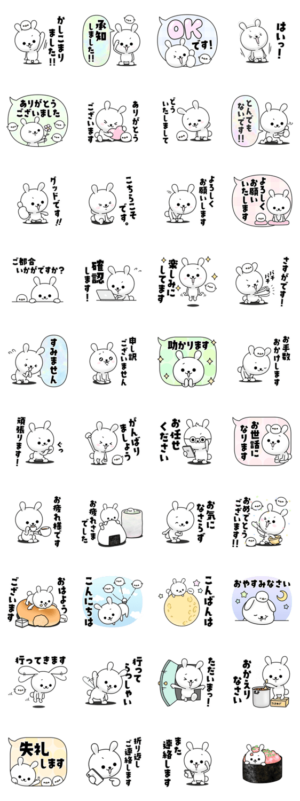 ひねくれうさぎシリーズ第21弾!お仕事の相手や目上の方にも使える敬語verです。毎日使える日常会話中心のセリフを集めました。なんかまるいのもいる…【ひねくれ度0%】